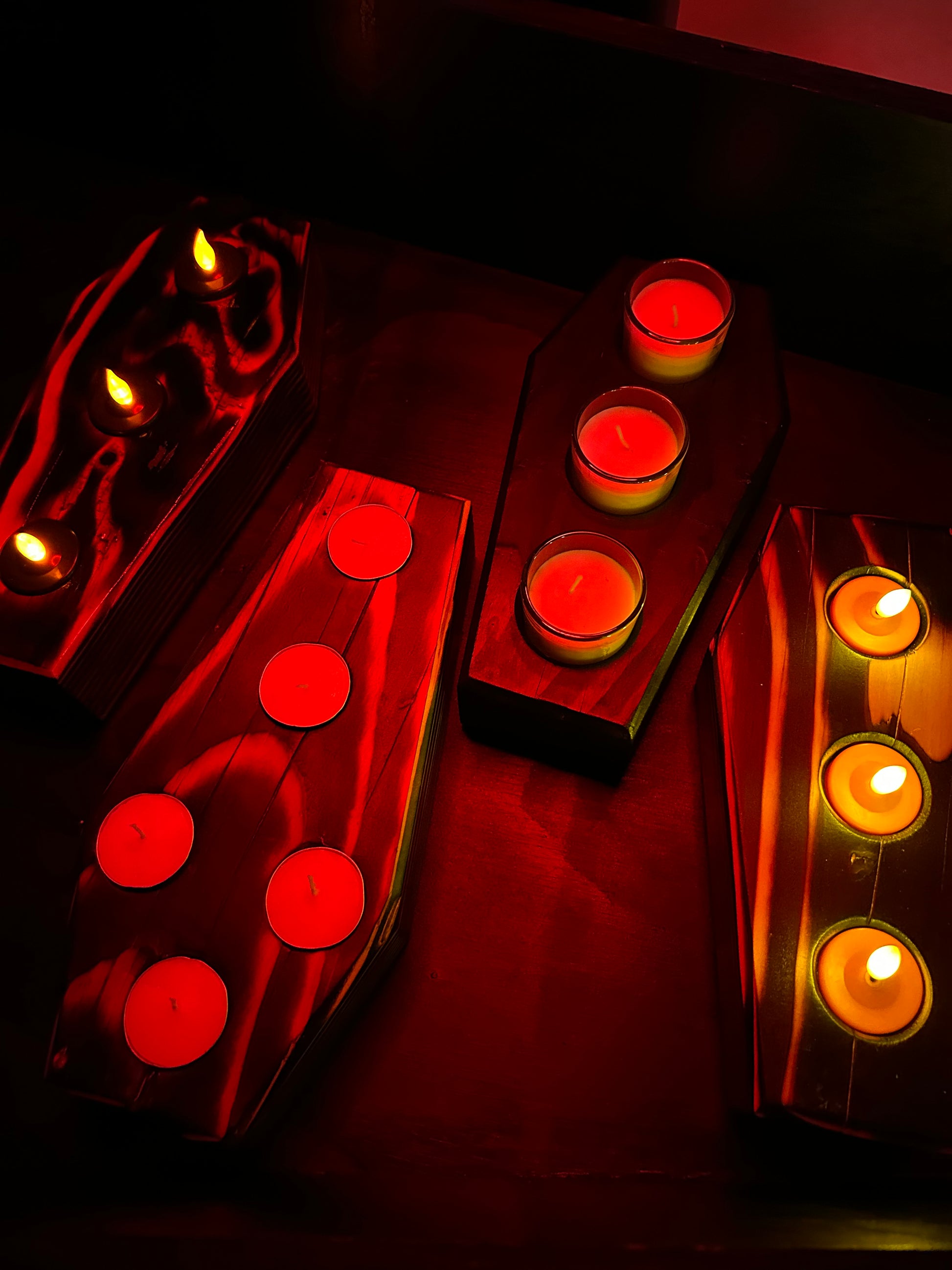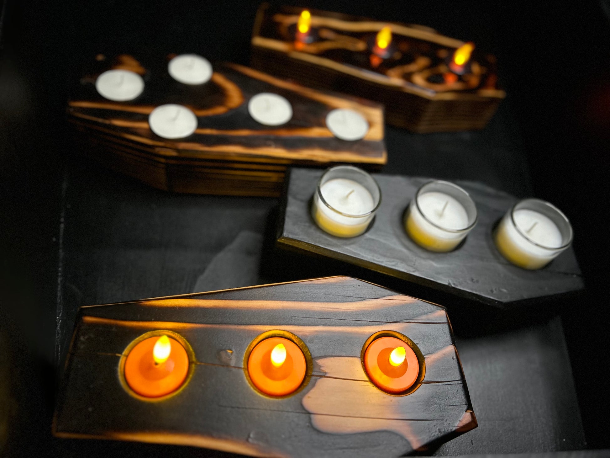 Thick Solid Wood Coffin Candle Holders - handmade with reclaimed Douglas Fir wood.