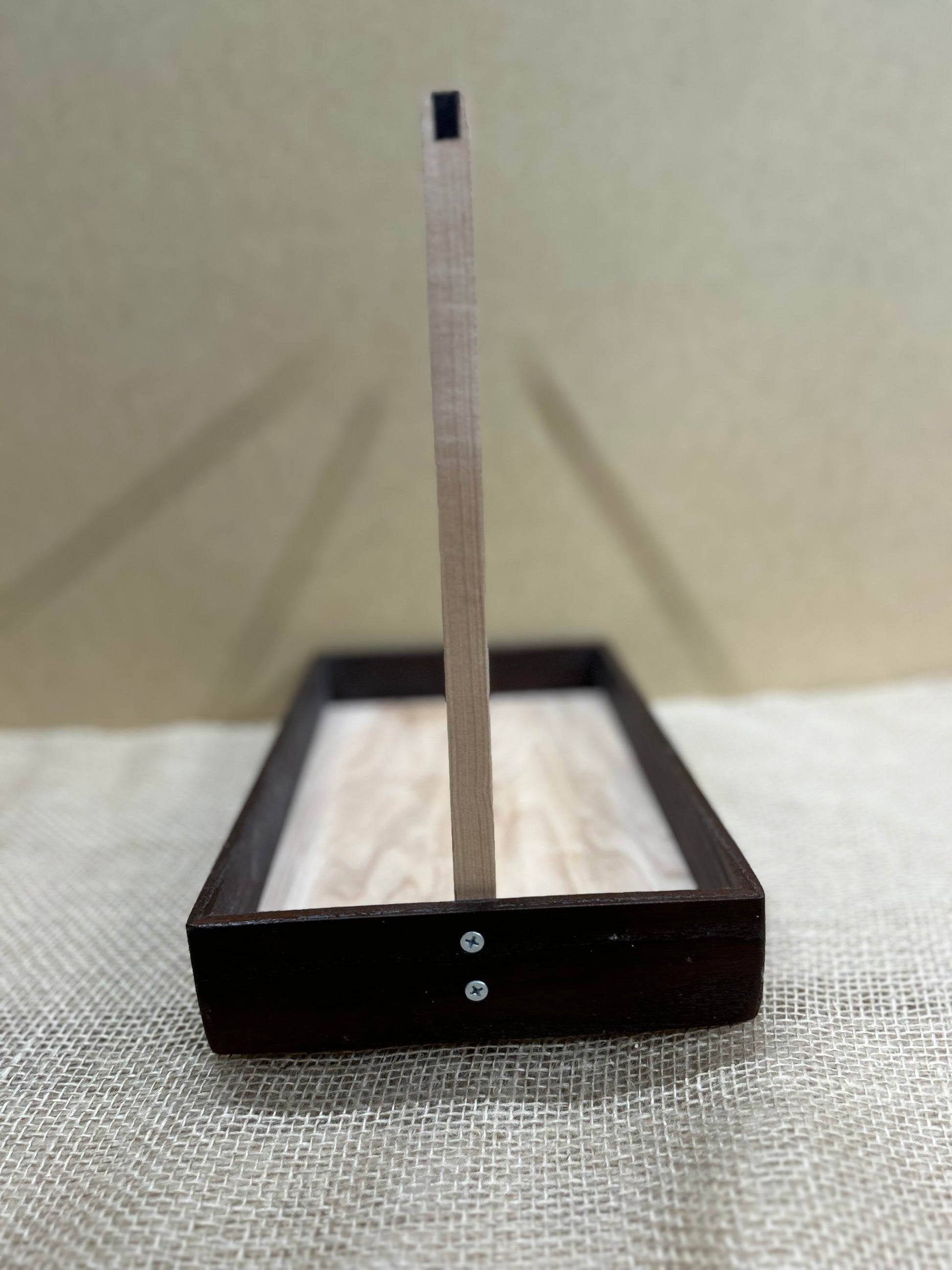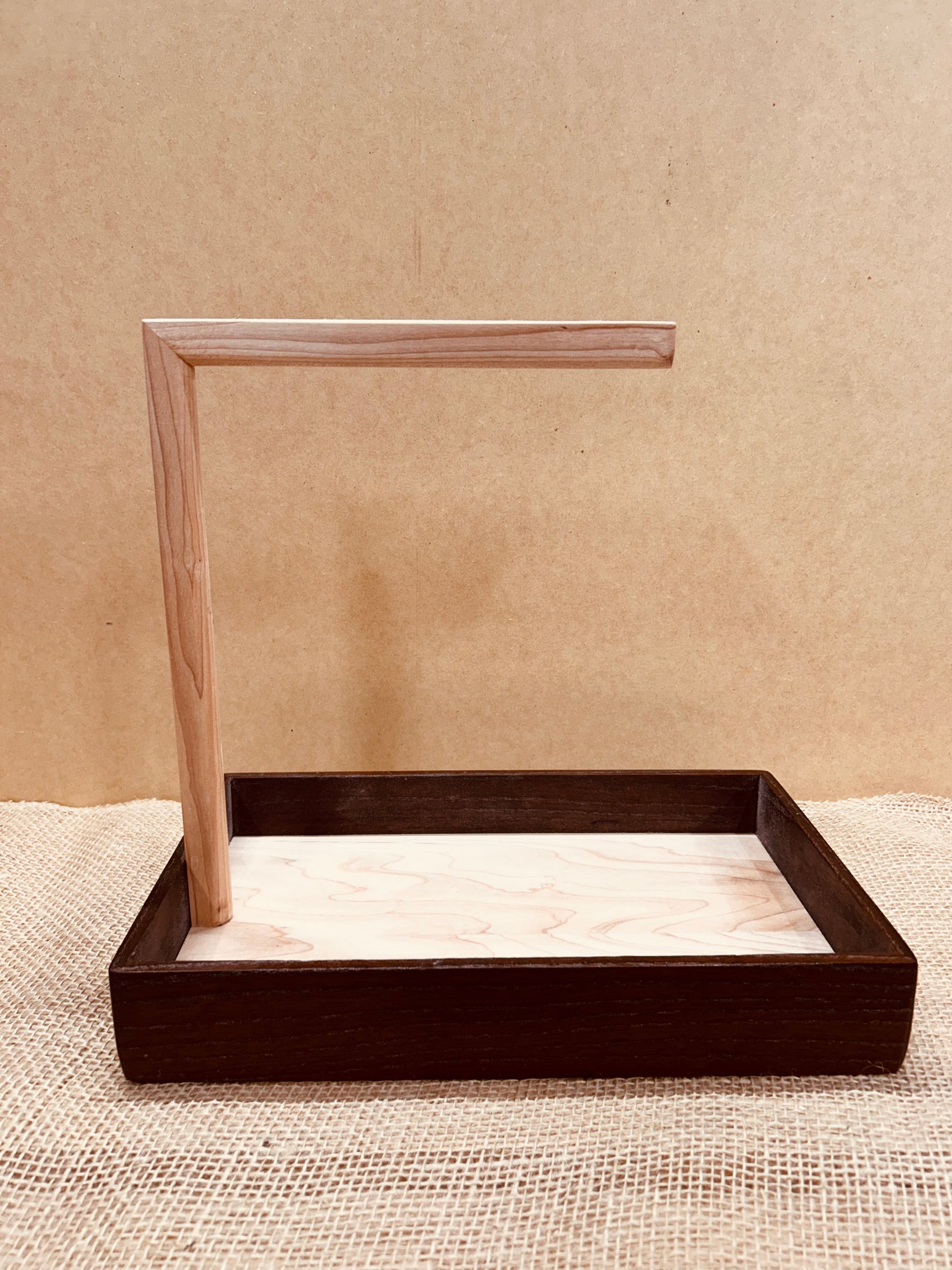 -Warm, Rich, tones and maple contrast make this useful tray a beautiful piece of daily life.