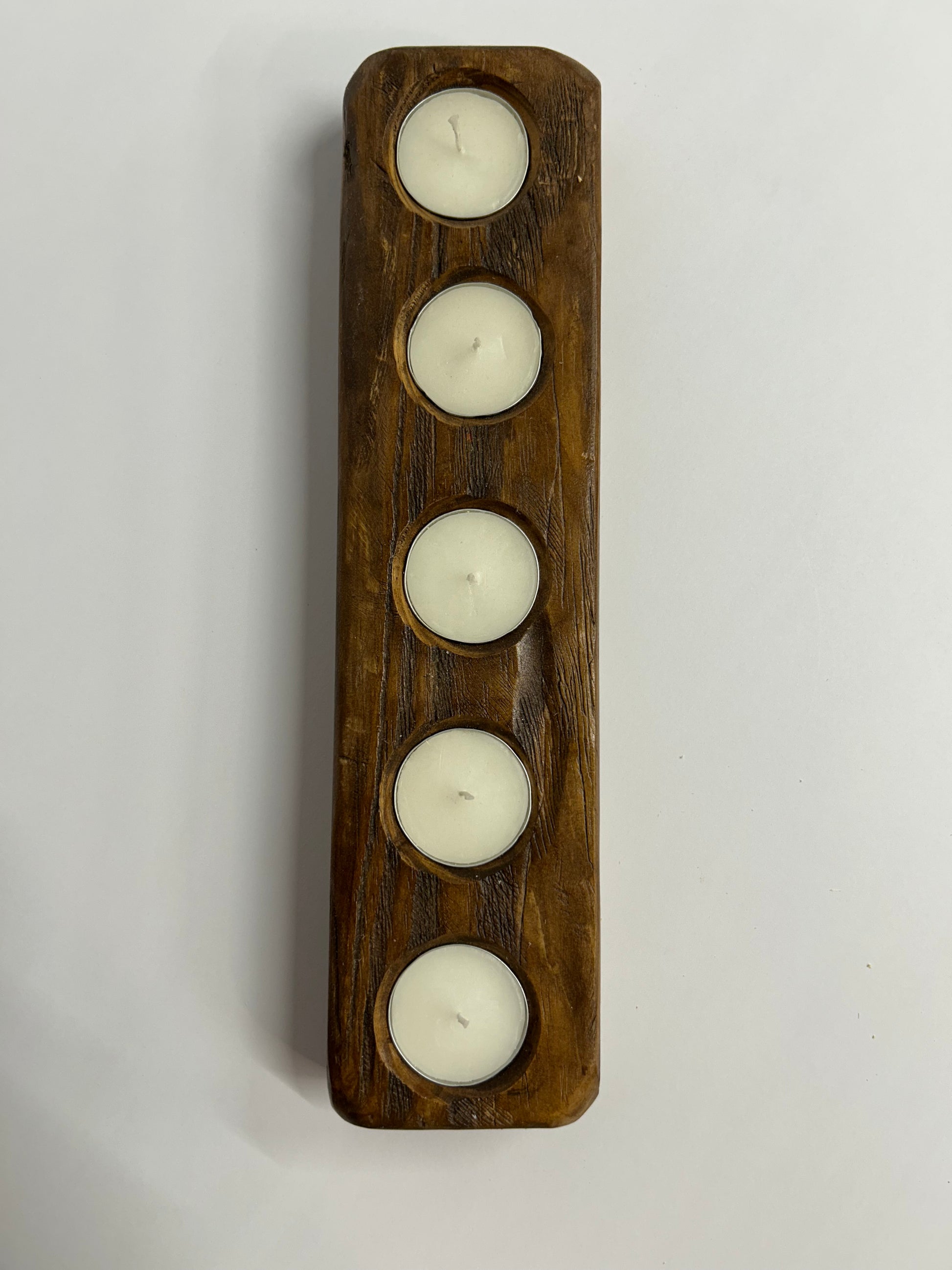 Handmade Rustic Farmhouse Tea Light Candle Holder – 5 Tealight Centerpiece